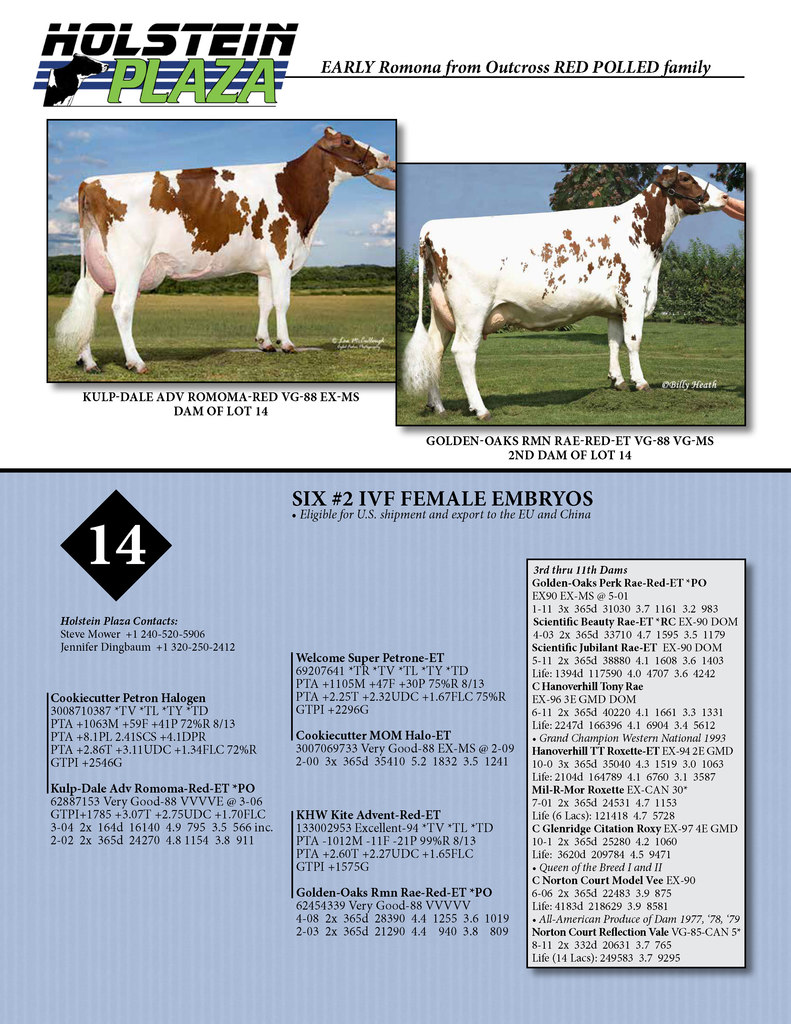 Six #2 grade IVF FEMALE Halogen (GTPI+2546) embryos from Kulp-Dale Advent Romoma-Red *PO... Potential POLLED Halogen from the ROXYS!