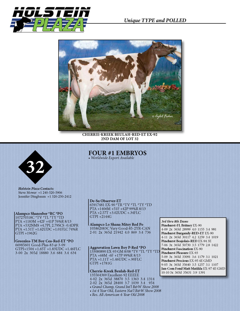 Four #1 grade from a POLLED daughter of Cherrie-Kreek BEULAH EX-92... Unique TYPE & POLLED