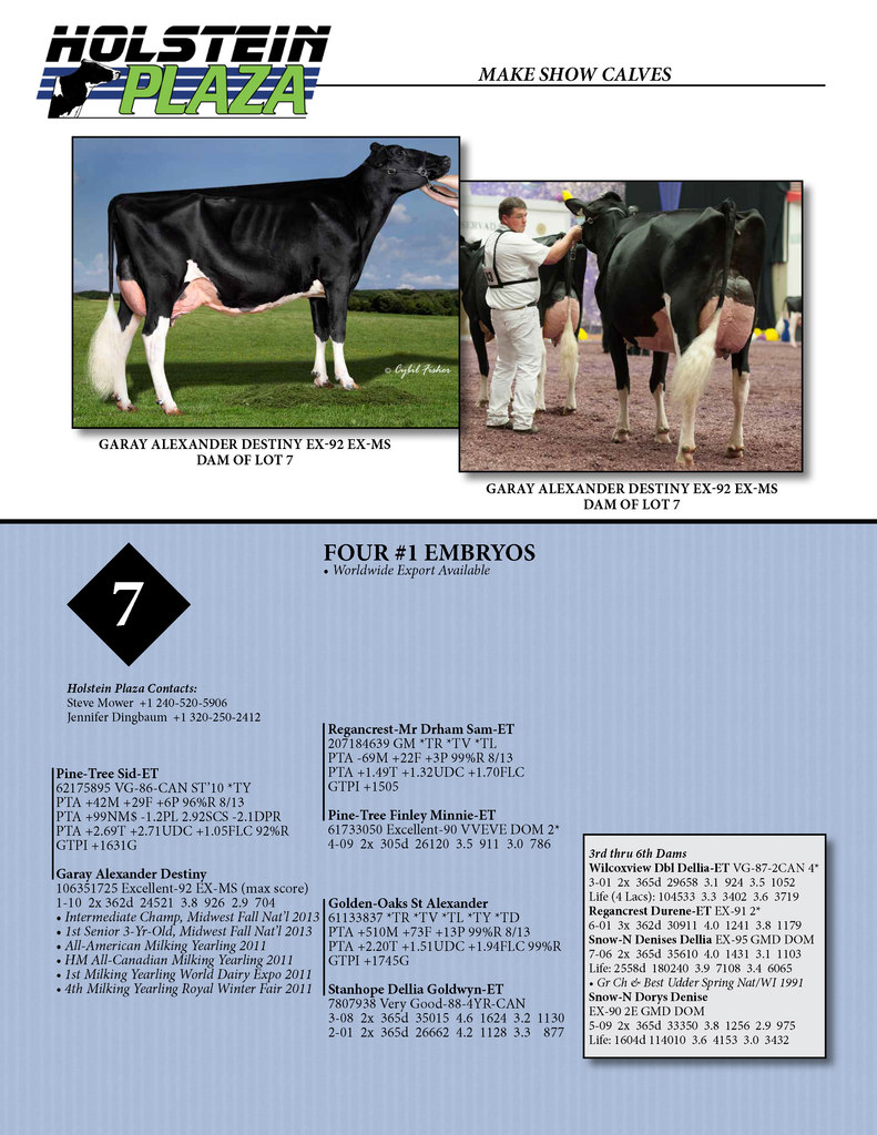 Four #1 grade Sid embryos from the All-American and 1st Milking Yearling at World Dairy Expo 2011 and 6th Senior Three-Year-Old at World Dairy Expo 2013 ... SHOW CALVES!