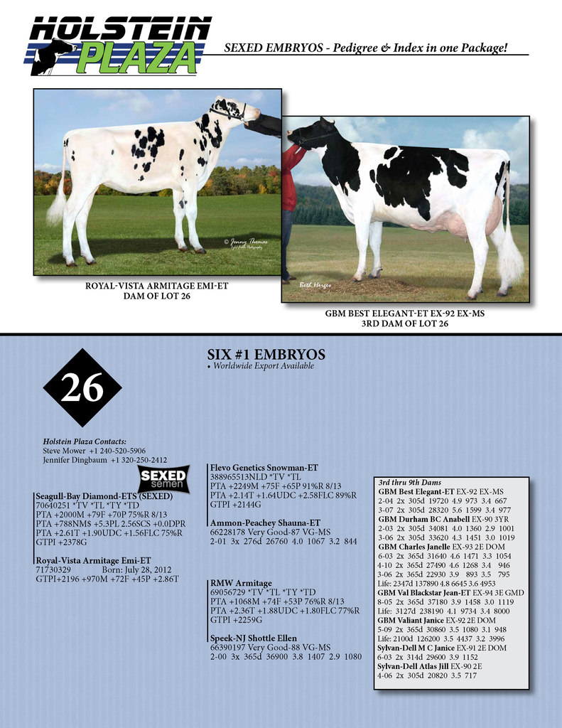 Six #1 grade SEXED Diamond embryos from the great Durham Anabell cowfamily... PA-GTPI NEARLY 2300G