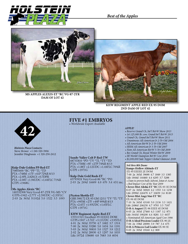 Five #1 grade Golden-PP embryos from the VG-87-2YR Shottle daughter of KHW Regiment Apple-Red-ET EX-95 EEEEE DOM... Unique opportunity to make a POLLED APPLE!