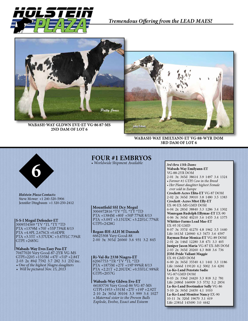 Four #1 grade Defender embryos from Wabash-Way Eves Easy Pea-ET VG-87-2YR, One of the best and highest daughters of Niagra in the breed from the Lead Maes!