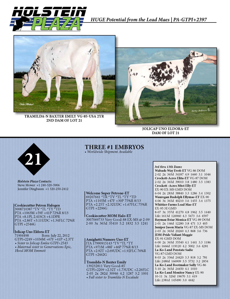 Three #1 grade Halogen embryos from the Uno daughter of Tramilda-N Baxter Emily... PA-GTPI of nearly +2400!