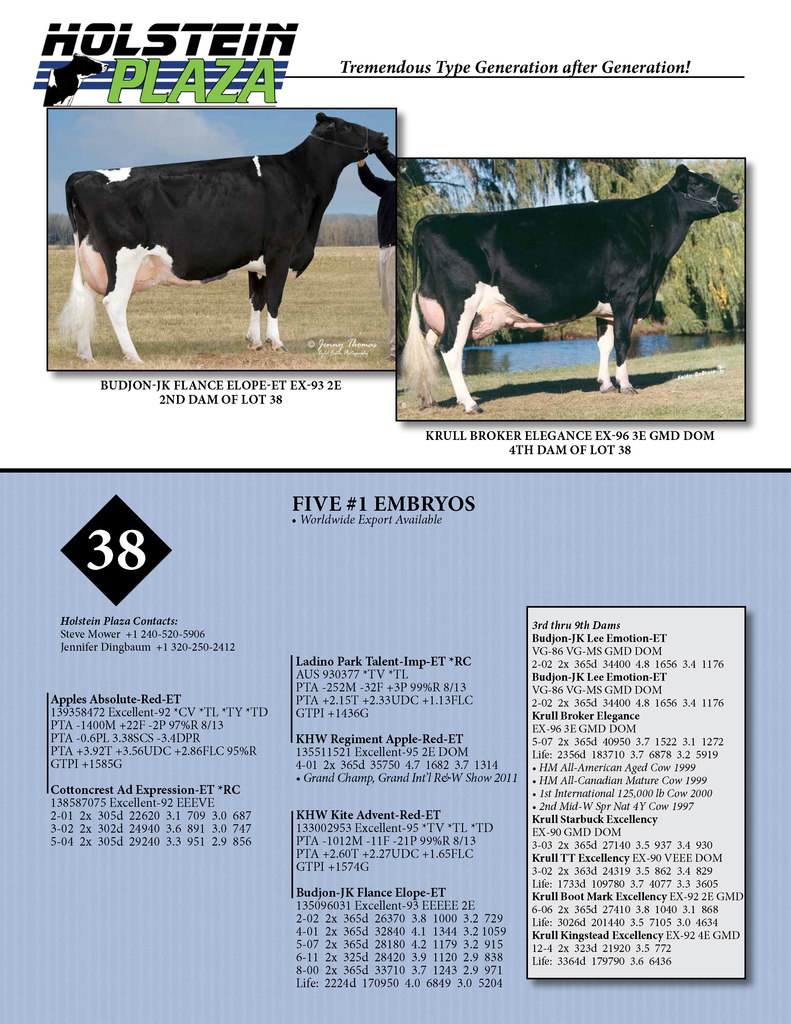 Five #1 grade Absolute embryos from Cottoncrest Ad Expression EX-92... Excellent Pedigree that transmits Tremendous Type Generation after Generation