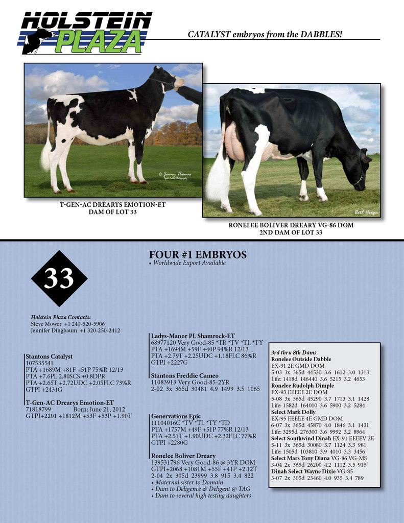 Four #1 grade Catalyst embryos from the +2201G Epic daughter of Boliver Dreary!