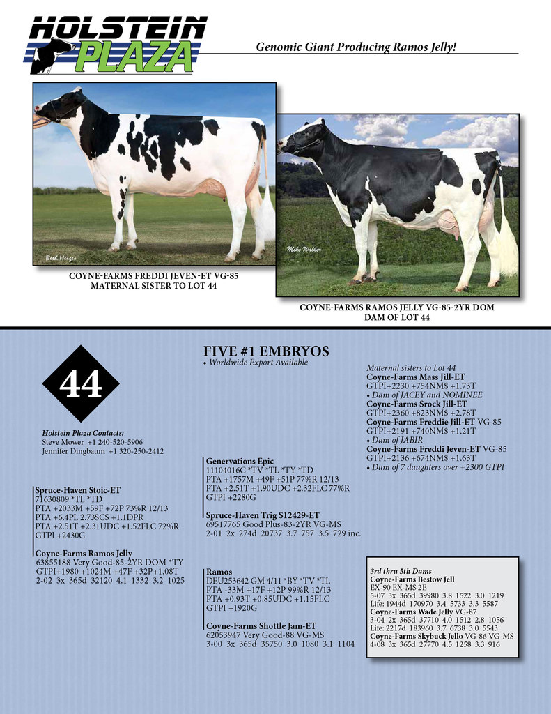 Five #1 grade Stoic embryos direct from the tremendous producing Ramos Jelly ... same family as Jabir, Jacey, Jetset and Nominee!