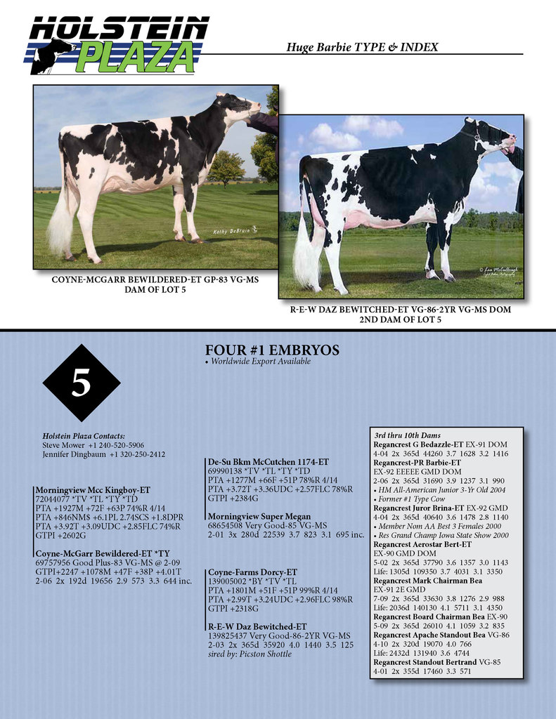 Four #1 grade Kingboy embryos from Coyne-McGarr Bewildered GTPI+2247 +4.01T... Huge Type and Index Barbies!