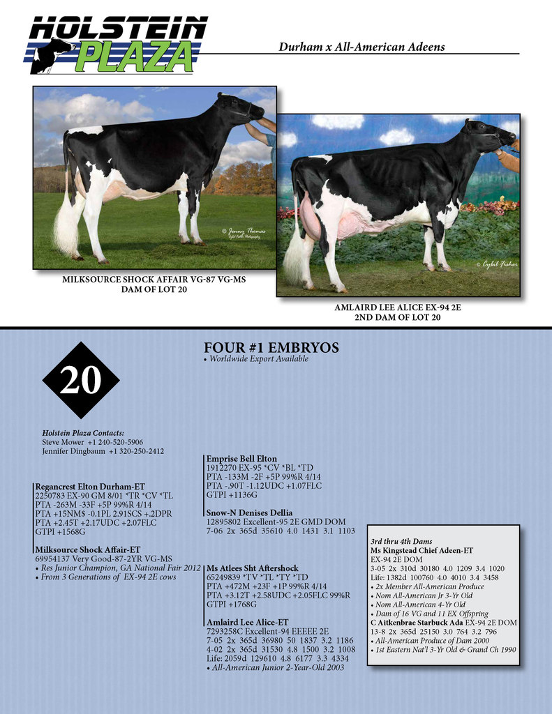 Four #1 grade hard to find DURHAM embryos from the VG-87-2YR Aftershock directly from Lee Alice EX-94... show calves!